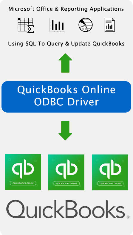 The QuickBooks Online ODBC driver enables you to work with QuickBooks Online data outside of the QuickBooks web interface. The driver allows you to use QuickBooks Online data in any application that supports ODBC. For example, Microsoft Access, Excel, SQL Server, Oracle, PHP, and Perl. You can query QuickBooks Online as well as adding, updating, and deleting QuickBooks Online records.